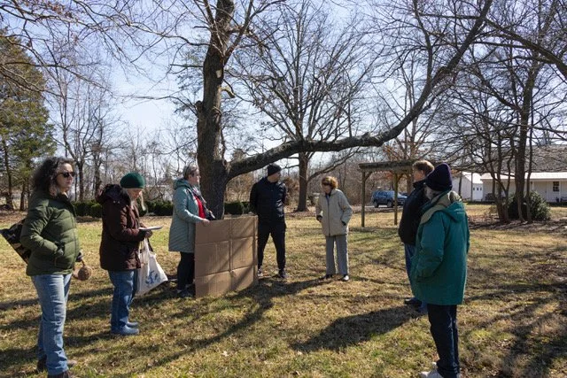 february 19, 2023 - Members of Mocolmp survey potential sites for george peck historical marker, to be installed this fall.